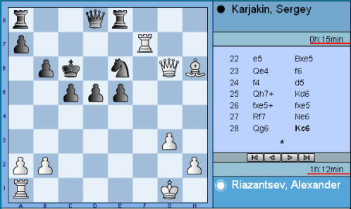 fso: | Andrey_76: Рязанцев белым цветом первый кто на этом турнире вступил в ИГРУ с Сергеем Карякиным, все предыдущие "бойцы" заметьте, делали быстрые ничьи, даже не помышляя использовать белый цвет против Сергея для игры на победу. |