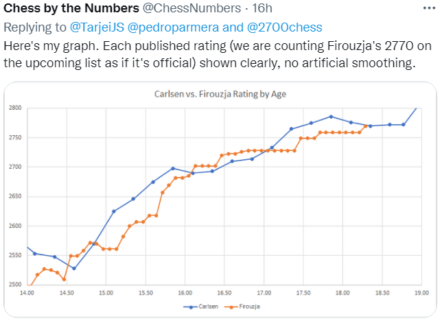 Да, в том же возрасте у Карлсена тоже было 2770. Правда, это давало ему третье место в рейтинге.