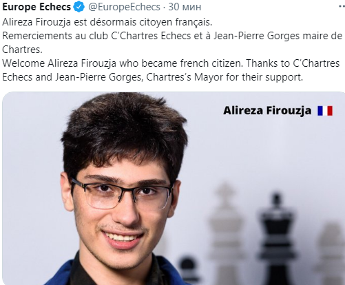 Всё, трансфер вслед за гражданством - мгновенный (а также бесплатный), с завтрашнего дня выступает под флагом Франции, а не ФИДЕ