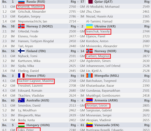 для России настоящее противостояние с Украиной (политика сама по себе запредельно внесет ажиотаж, Карякинgate - отдельно интрига). Вот battle намечается! Предположительно не раньше четвертого-пятого тура. Еще Норвегия для России (может в третьем туре), поражение лидера отразится на команде, командный дух которой оставляет желать лучшего. Ну и Голландия с Тукмаковым дважды интрига(также в свете недавних событий). Так что едва ли не самая политически насыщенная Олимпиада для России-СССР, начиная с первой половины 30-х годов.