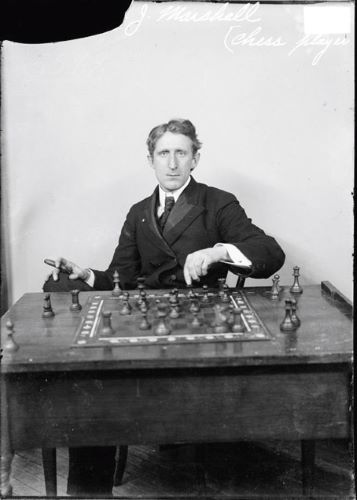 | Фрэнк Маршалл (1877-1944). Чемпион США 1909-36 гг. и один из сильнейших игроков мира начала XX века, он редко фотографировался без сигары в руке. Дата неизвестна |