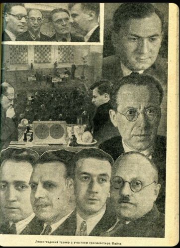 | Ройбен Файн (22) и 5 других участников Ленинградского турнира 1937 года ("Турнир с Файном"): Всеволод Раузер, Александр Ильин-Женевский, Александр Будо, Илья Рабинович и Григорий Левенфиш. Ильин-Женевский, Рабинович и Раузер не дожили до конца Второй мировой войны |