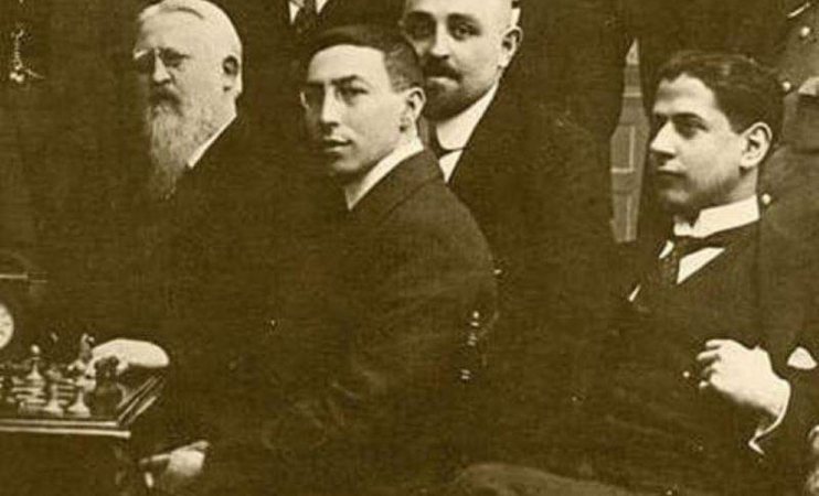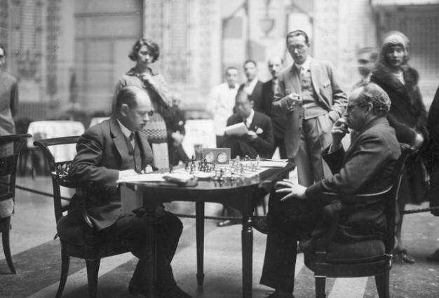 | Сан-Ремо, 1930 год. В 11-м туре (сыгранном 30 января) Роберто Грау (Аргентина) белыми фигурами играет с Ароном Нимцовичем (Дания). Партия была выиграна черными в 26 ходов |