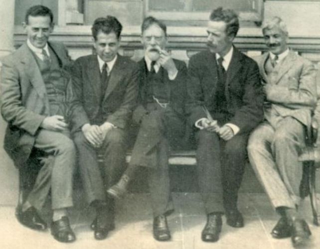 | Москва, 1925. Оргкомитет 1-го крупного международного турнира, проходившего в советской столице (2-й и 3-й были в 1935 и 1936 годах соответственно). Стоит 3-й справа — Н. В. Крыленко. Сидит справа — А. Ф. Ильин-Женевский. |