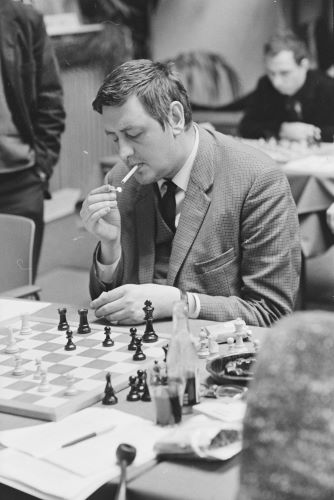| Ульф Андерссон , на фото в матче против Бента Ларсена в Стокгольме, февраль 1975 года. Швед одержал убедительную победу со счетом 5½:2½. |