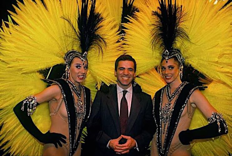 13 чемпион мира празднует победу в турнире по быстрым шахматам "Иммопар Трофи" 20 мая 1990 года в парижском кабаре "Лидо".