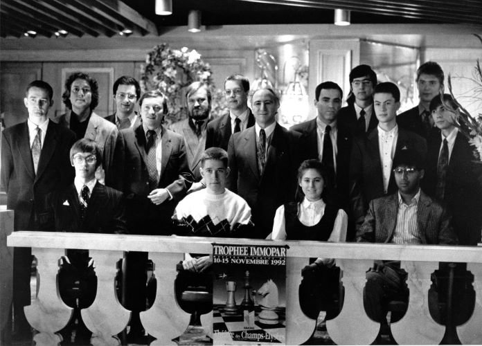 "Командное фото" перед турниром Immopar Rapid (формат KO), ноябрь 1992 года, на снимке только одна женщина. Я заняла 6-е место. Сколько гроссмейстеров вы можете узнать на фото?