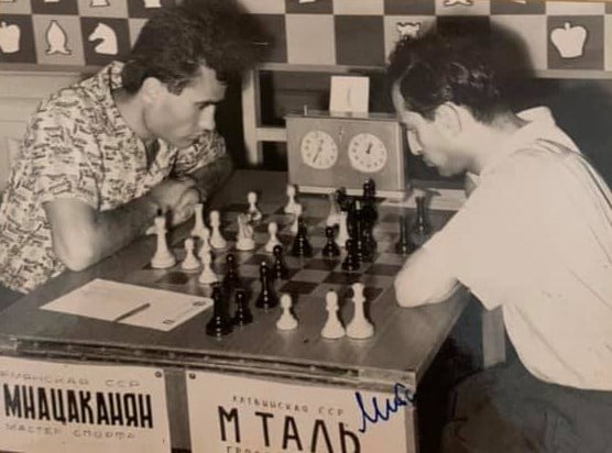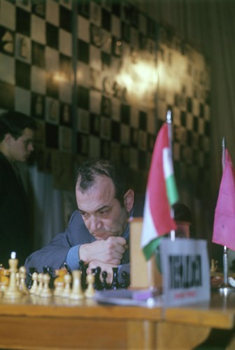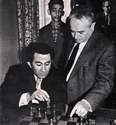 | In play in Moscow on this day in 1971 in the star-studded Alekhine Memorial tournament - Vasily Smyslov & Viktor Korchnoi. 1st-2nd place in the event - which featured 5 World Champions (past, present & future) was shared by Karpov & Stein. |