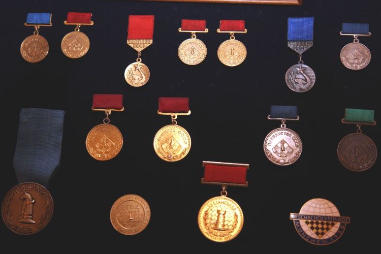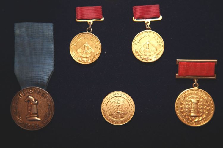| Коллекция медалей Давида Бронштейна, которая находится в Музее шахмат в Москве (была подарена РШФ вдовой Бронштейна в феврале 2021 года). |