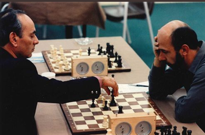 | GMs Lajos Portisch and Lubomir Kavalek at the 1984 Olympiad. |