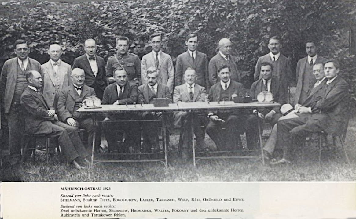 | Фотография Тартаковера и Зноско-Боровского со стр. 287 книги Б. Нильсена « Альт ом Скак» (Оденсе, 1943): |