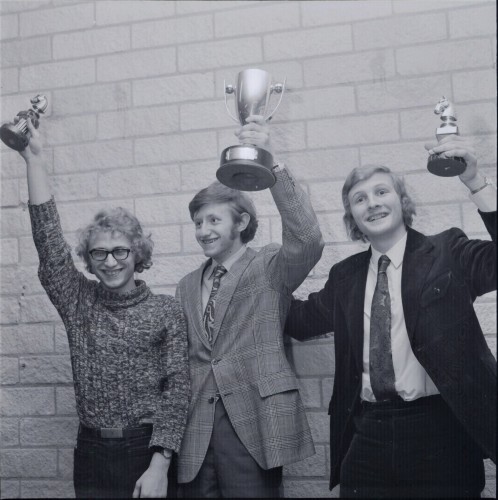 Призеры чемпионата Европы среди юниоров, Гронинген, Нидерланды, 1972/73. Слева направо: Аурел Урзикэ (Румыния; 3-й), Олег Романишин (СССР; 1-й), Тони Майлс (Англия; 2-й). |