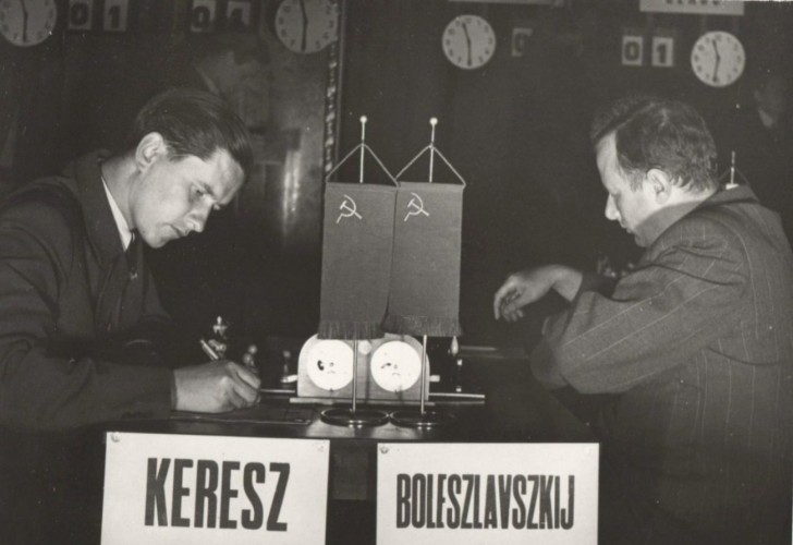 На этом фото Пауль Керес играет против Болеславского в 11-м туре (из 18). |