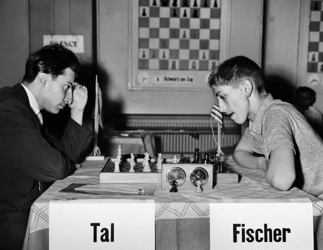 | В этот день в 1959 году Михаил Таль встретился с 16-летним Бобби Фишером в последнем туре турнира в Цюрихе. Партия завершилась вничью. Таль занял 1-е место с 11,5 очками из 15, Глигорич стал вторым с 11 очками, а Керес и Фишер разделили 3–4 места с 10,5 очками. |