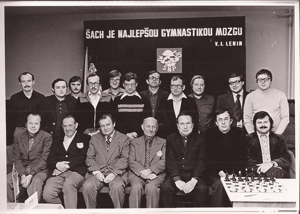 Игроки в Тренчьянске Теплице, 1979 год. На заднем плане цитата Ленина: «Шахматы — лучшая гимнастика для ума». Я сомневаюсь в подлинности этой цитаты...
