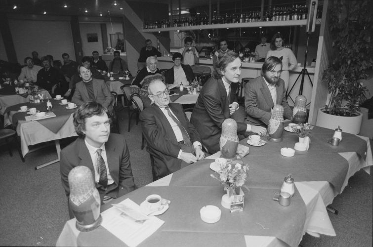 | Вейк-ан-Зе, 21 января 1991 года. Во время жеребьёвки (на определение цвета фигур) в матчах претендентов - слева направо: Дьюла Сакс (Венгрия) и Виктор Корчной (Швейцария); Сергей Долматов и Артур Юсупов (оба - СССР) |