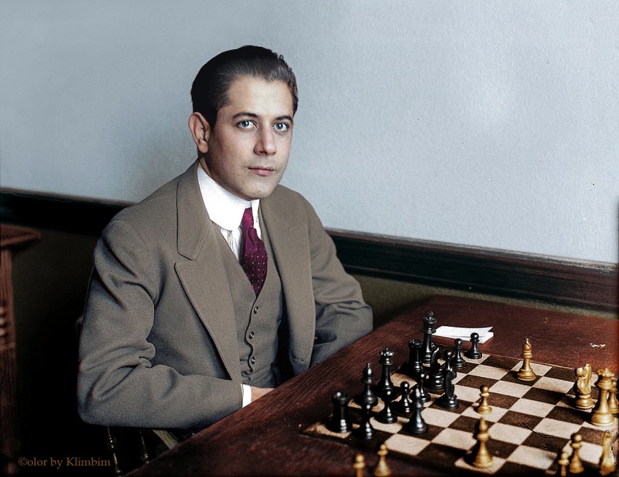 Кстати, я нашёл в интернете две фотографии молодого Капабланки. Фотографии были изначально чёрно-белые, но их сделали цветными. По-моему неплохо получилось.