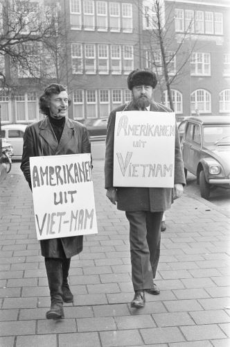 | Гроссмейстер Йоханнес Хендрикус Доннер среди протестующих против войны во Вьетнаме . |
