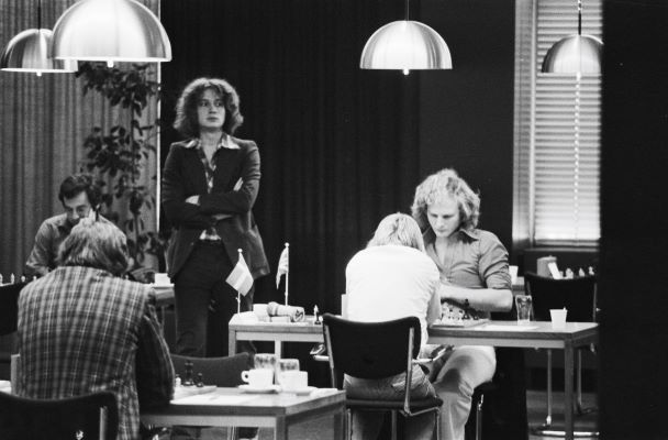 Stylish photo (by Bert Verhoeff/Anefo): last round of the first Interpolis tournament in Tilburg 1977. Karpov was leading, the tournament book judged Miles (in 2nd place) 'insecure' & Timman (in 3rd place) 'not very alert'. Indeed both lost, to Balashov & Andersson respectively.