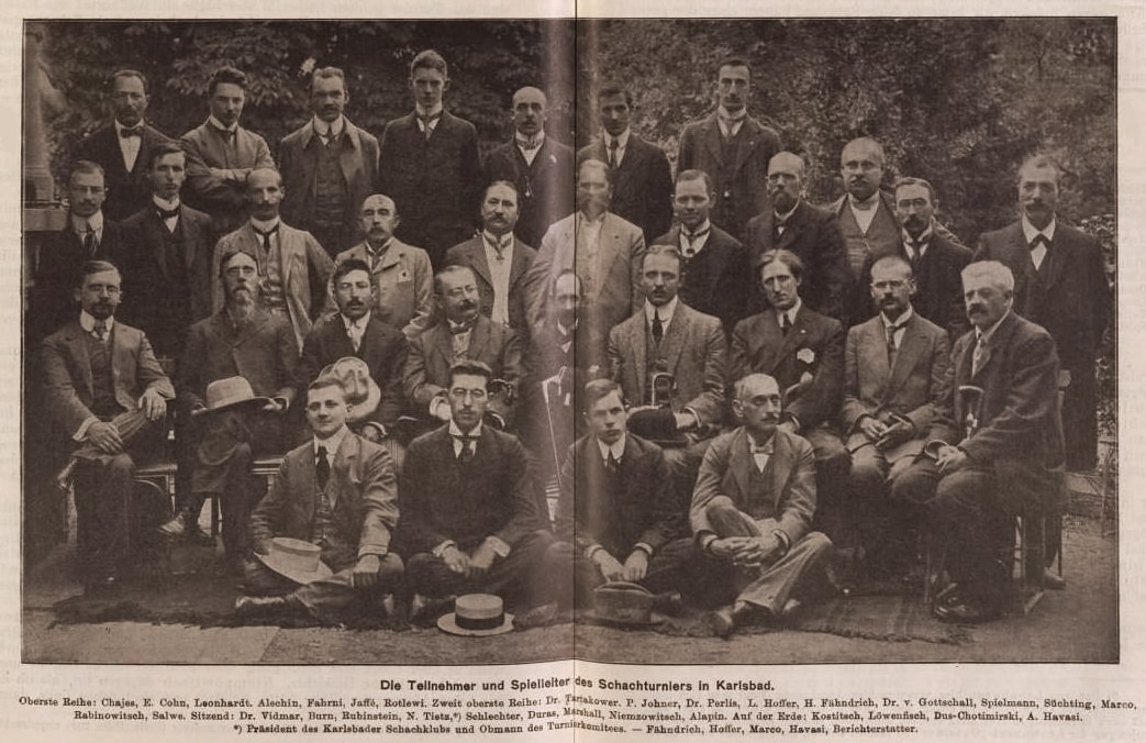 The participants at the great tournament at Carlsbad (Karlovy Vary), July-August 1929.