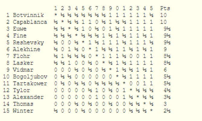 По факту чемпионами СССР 1967 года стали (на равных) Таль и Полугаевский. Но вот кто тогда был сильнейшим шахматистом в мире. Все ли это прекрасно понимают? Вообще-то Вы занимаетесь сущей безделицей. Зачем-то приводите результаты матчей Ботвинника. Неужели (кроме Вас) кто-то их не знает. Займитесь-ка лучше составлением результатов чемпионатов,скажем, Австралии или Канады, или, на худой конец, Кейптауна. Я, скажем, сейчас занимаюсь поиском таблиц чемпионатов Югославии, начиная с любительских чемпионатов (1923-1940). Попробуйте найти хотя бы одну (из довоенных, разумеется).