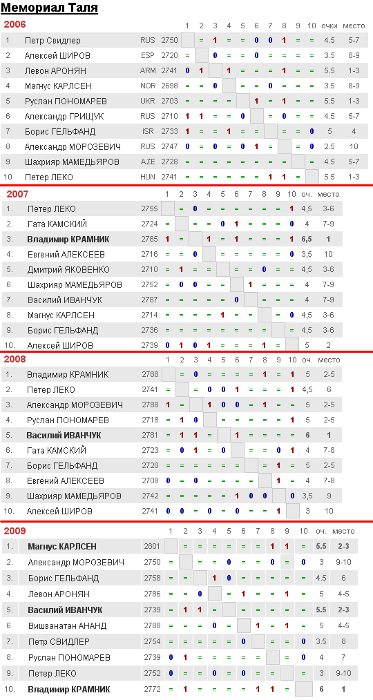 Альтернативный вывод: в какие-то годы надо быть Крамником, в какие-то - Иванчуком, а в остальном - как повезет