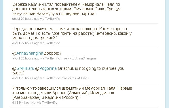 Важнейшим источником для прояснения вопроса, кто же выиграл 5-й мемориал Таля является твиттер Аркадия Дворковича - сужу по тому, что и сайты региональные ссылаются на него, и такие акулы Шахурнета как Шак.