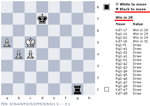 Белым надо было форсировать ничью на мой взгляд (не отдавать ладью). Думаю белые должны проиграть. |