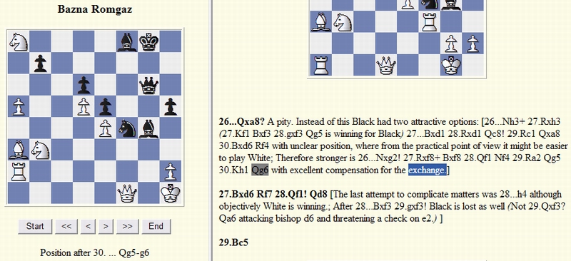 Вместо того, чтобы ладьей ударить на b2 (с лёгким выигрышем) Савченко решил провести размены тоньше и сыграл 43...Сxb2??. (Дальше уже ничего не зависело от чёрных. 1-0).