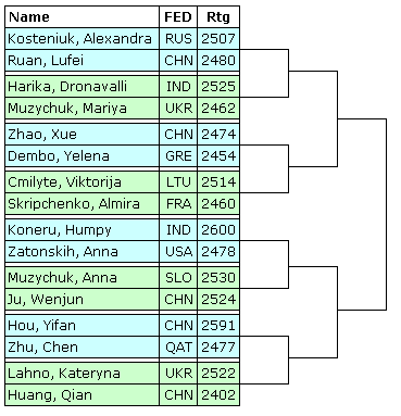 В 3-й круг уже вышли Конеру (Индия), Хоу Ифань (Китай), А. Музычук (Словения), М. Музычук (Украина), Харика (Индия), Цзюй Вэнцзюнь (Китай), Чжао Сюэ (Китай), Затонских (США) и Дембо (Греция). |