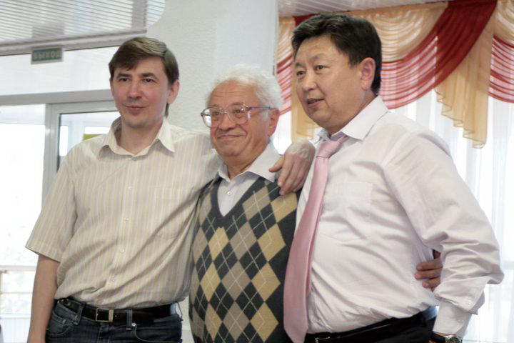 Евгений Бареев, Борис Постовский и мэр Элисты, шахматный арбитр Вячеслав Намруев