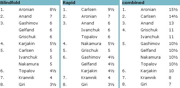 Карлсен - 2 - ое место и РАПИД !!!
