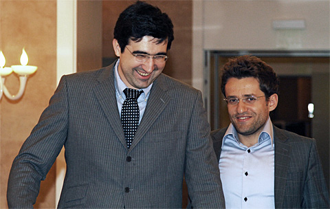 Судя по этой фотографии (с сайта ChessBase), настроение у Крамника очень даже гудёное.