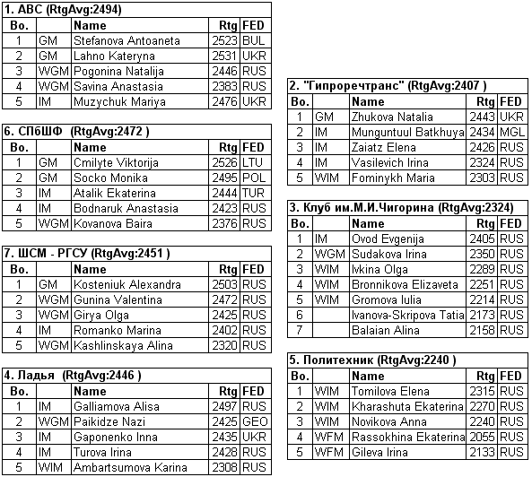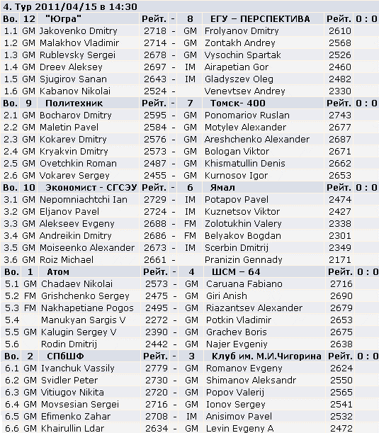 Украинцы играют совсем плохо.Эльянов,Ефименко,Арещенко,Моисеенко - все уже имеют по баранке от соперников,уступающим им в рейтинге.Иванчук и Пономарёв по 2 из 3 - результат,учитывая силу соперников,посредственный. Хорошо,что до Командного Чемпионата Мира есть время.А то были бы все шансы занять место шестое... |