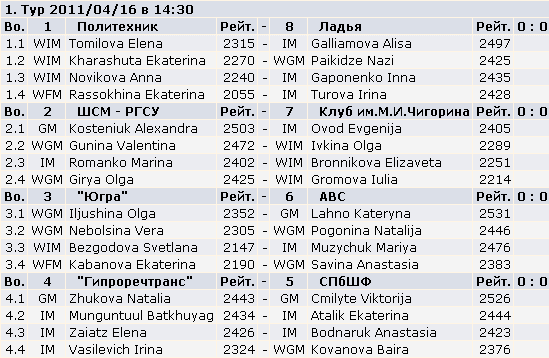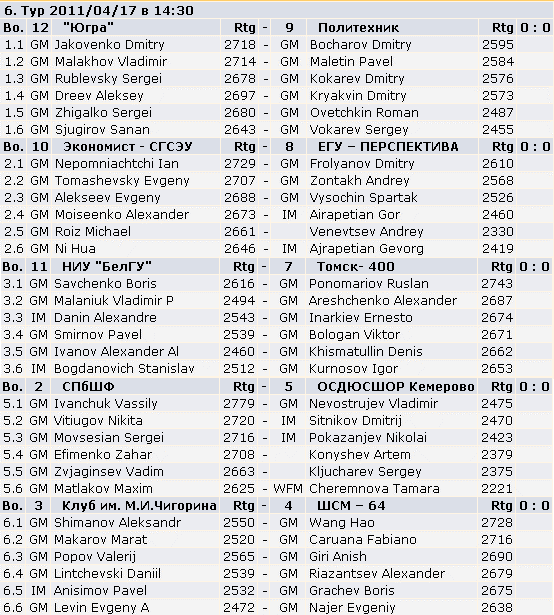 GKA: | Vova17: Странный матч ШСМ – 64 - СПбШФ. Все партии закончились до 30-го хода вничью. |