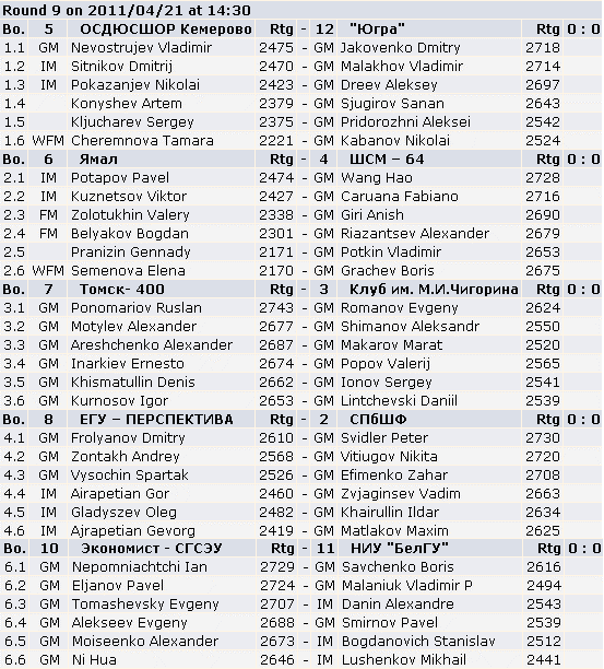| дятел: Как-то не сложилась борьба на первых досках центральных матчей, Яковенко и Пономарев довольно убедительно победили. |