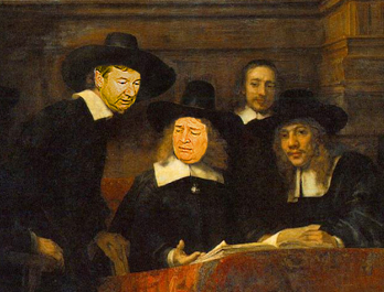 Рембрандт, Харменс ван Рейн "Синдики", фрагмент, х/м