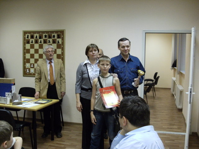 В воскресенье 29 ноября, в День матери России, на Беговой прошел турнир по быстрым шахматам «Семейная ладья». В рапиде играли семейные команды, состоящие из трех человек: двое взрослых и ребенок до 14 лет (допускались и команды, состоящие из двух детей и одного взрослого). Побороться за призы – а они были весьма привлекательные: путевка в санаторий, ноутбук и dvd-проигрыватель – пришли 14 команд. Особо выделялись две семьи – Воробьевых и Рычаговых, в которых папы – гроссмейстеры, а мамы – мастера. Но победила в турнире семья Масловых (в составе: Андрей, Ирина и Иван), они заработали путевку на троих в санаторий «Чайковский». Вторыми стали Воробьевы (Евгений, Ольга и Иван) и получили ноутбук. Третий приз получили Северины (Мария, Руслан и Алексей).