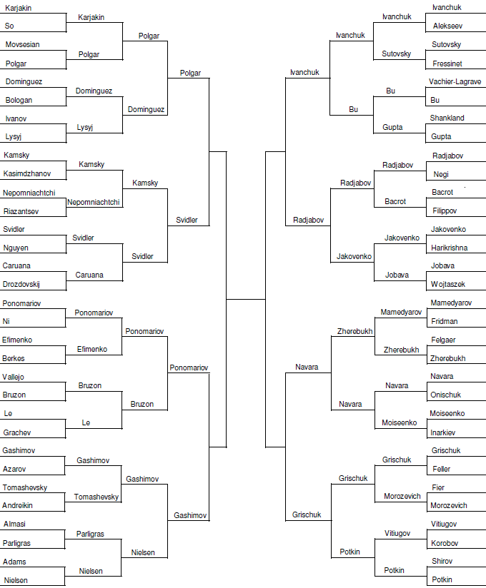 Свидлер, Пономарев, Гашимов, Иванчук, Раджабов, Грищук - и где же лишние люди? Это игроки топ-20. Разве что Навара и Полгар... Но и про них так говорить, наверное, нельзя. И еще круг впереди. |