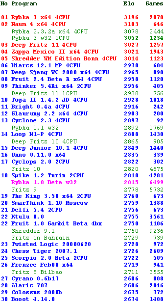 Впереди только Rybka 3.0 x64 4CPU, до нее 92 пункта. |