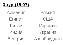 ProLog: | Ессентуки: ...Азербадьжанцам может повезти на 3-е место. Хотя, трюк дешевый, первый по рейтингу играет на 4-ой доске. На ЧЕ прокатило, тут - не думаю... |