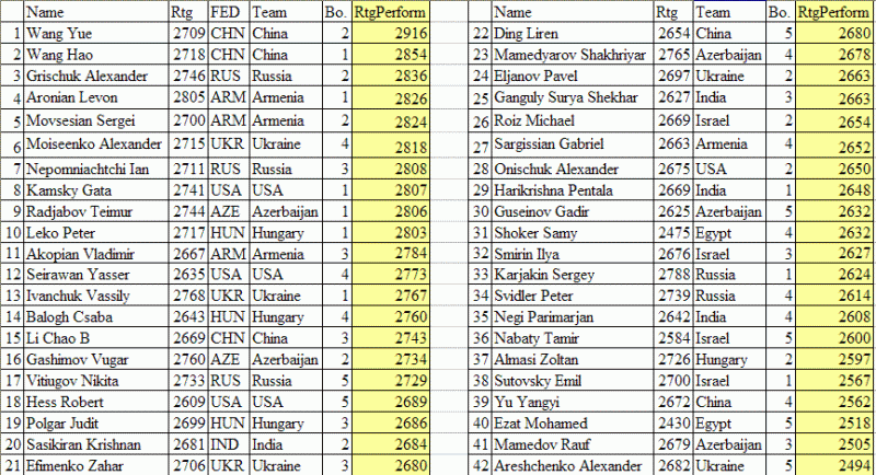 China 2 первые доски - выше всяких похвал! 4-5 подкачали,я ожидал от них гораздо большего.Команда засиделась на старте,но вовремя собрались.Второе место заслужили вполне