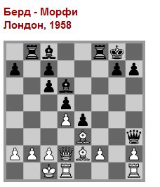 Не надо осуждать старика Легаля за объективно проигрывающий ход К:e5, а Морфи - за сомнительную, не просчитанную до конца, жертву ладьи на f2 в партии с Бердом...