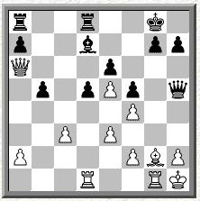 В этом, технически несложном, выигранном для черных положении, американец затеял красивую жертвенную атаку 17...Rxf2. В этом месте подождем со знаками. Если выяснится, что жертва ладьи выигрывала форсированно, поставим два восклицательных; в противном случае имеем право на знак сомнения (?!) или даже на вопросительный. В партии Берд не оказал должного сопротивления и быстро проиграл: 18.Bxf2 Qa3!! 19.c3 Qxa2 20.b4 Qa1+ 21.Kc2 Qa4+ 22.Kb2? Bxb4 23.cxb4 Rxb4+ 24.Qxb4 Qxb4+ 25.Kc2 e3 26.Bxe3 Bf5+ 27.Rd3 Qc4+ 28.Kd2 Qa2+ 29.Kd1 Qb1+ 0–1. |