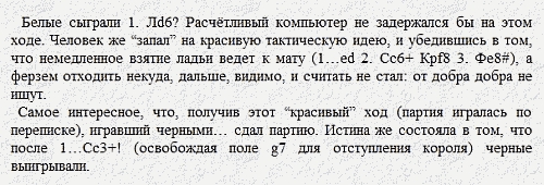 Помню, что статью эту я перечитывал несколько раз (было мне тогда лет пятнадцать), пытаясь понять - чем же она мне, при всей моей любви к шахматам и преклонении перед Ботвинником, так не нравится?