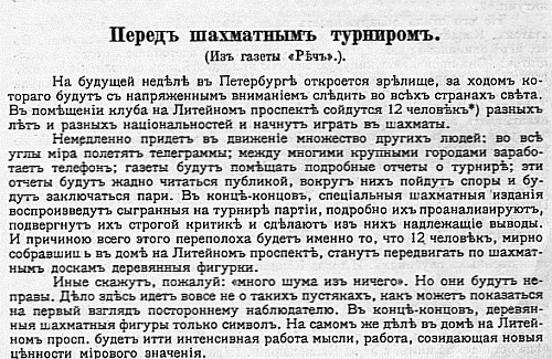 Полностью две статьи Ласкера из петербургских газет 1914-го года воспроизводятся здесь