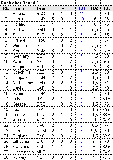 Все не столь печально - Россия без Крамника вполне сможет занять четвертую строчку (третья же уверен за Венгрией), однако, Украина уже не претендует на медали. Финальный расклад: Армения, Болгария, Венгрия, Россия (мой первый прогноз был: Армения, Украина, Венгрия, Россия) |