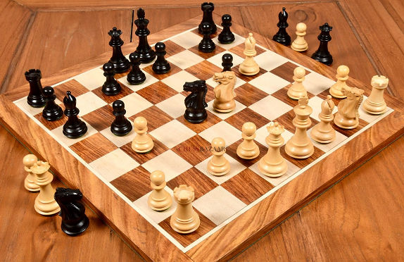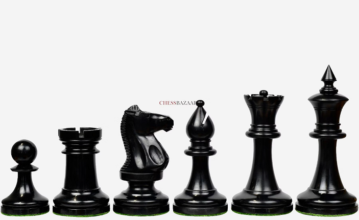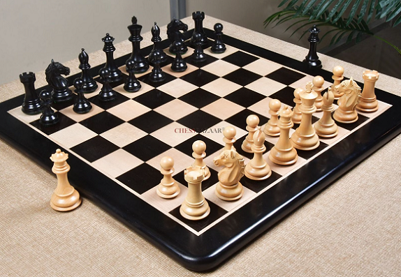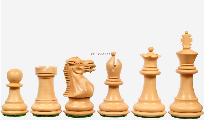 Ещё один из вариантов "Стаунтона", от индийской компании ChessBazaar. Цена 280 долларов. Высота фигуры Короля 4 дюйма или 102 мм по европейскому стандарту.