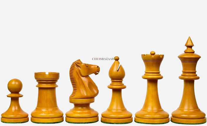 А вот репродукция шахматных фигур, которые использовались на том турнире, от компании ChessBazaar. Цена репродукции 280 долларов. Высота фигуры Короля 4 дюйма или 102 мм по европейскому стандарту.