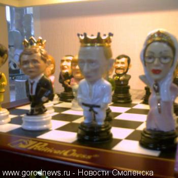 Исключительно для солидных людей. Политиков, например. Шахматы с фигурками в виде мировых вождей. Белый король с шикарной золотистой короной, привычно суровым лицом и кимоно с черным поясом - это Владимир Путин. А черный, конечно, Барак Обама. Далее по убывающей мирового политического рейтинга: Кондолиза Райс, Николя Саркази, Махмуд Ахмадинежад, в конце списка - Джордж Буш. |